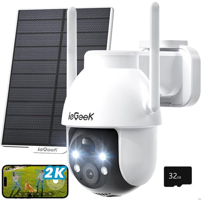 Camera Surveillance WiFi Solaire - 2K Exterieure sans Fil 360° PTZ Vision Nocturne Couleur PIR Audio Bidirectionnel avec 32go