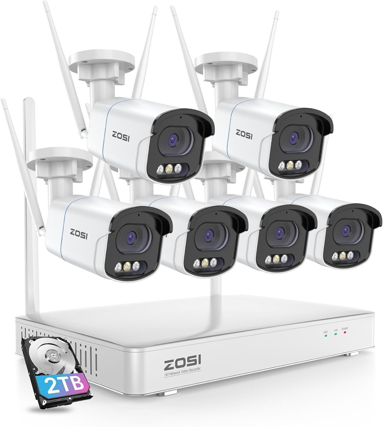 ZOSI 2.5K 8CH NVR Kit Vidéo Surveillance sans Fil 4MP Caméra WiFi, Détection IA