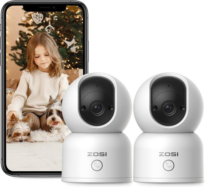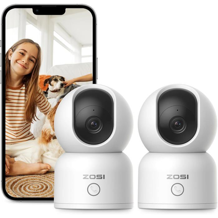 ZOSI 2MP PT Caméra IP WiFi pour intérieur, Plug-in Caméra vidéo Surveillance Pan 355° Tilt 108°, Appel en Un Clic, Détection de Personne et Suivi Automatique, Audio Bidirectionnel, Stockage Cloud