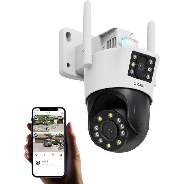 Caméra de sécurité ZOSI, double lentille grand angle 110°, détection IA, C298 Max et SE