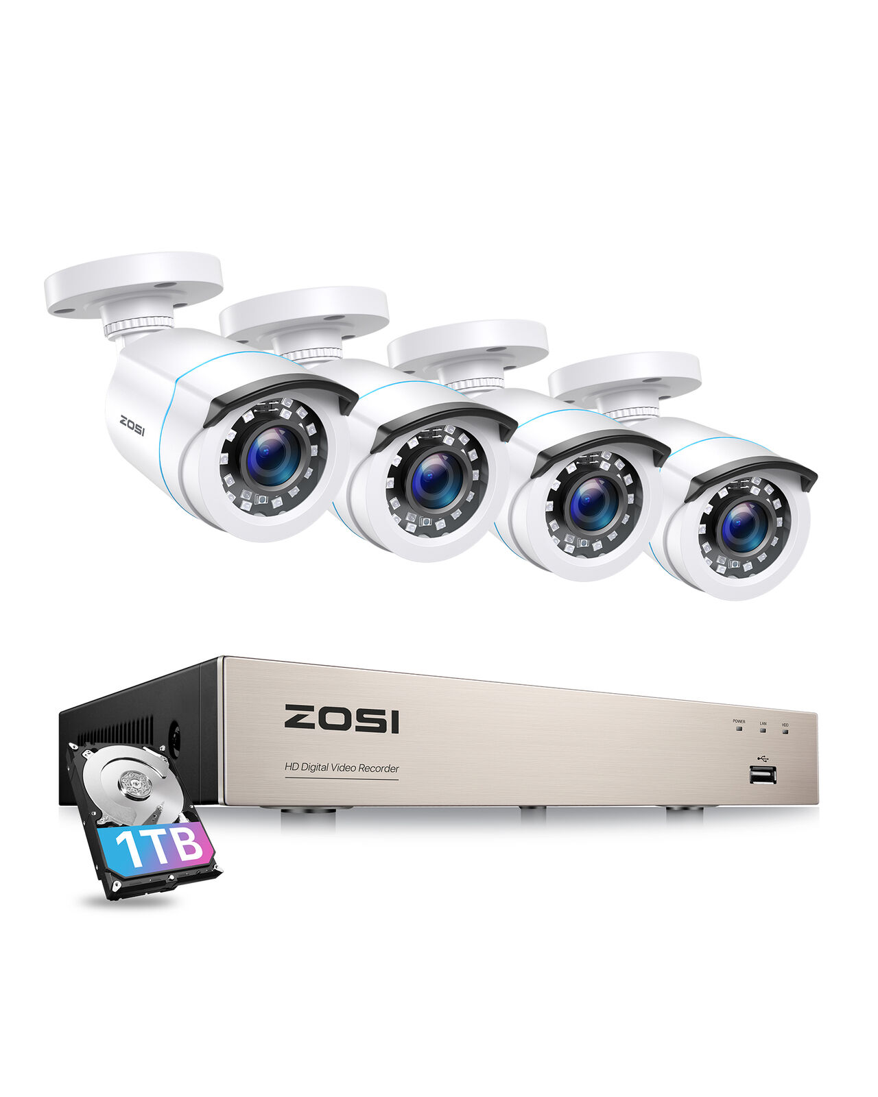 ZOSI HD H.265+ 8CH 1TB DVR 1080P avec 4 Caméra de Surveillance 2MP Alarme maison