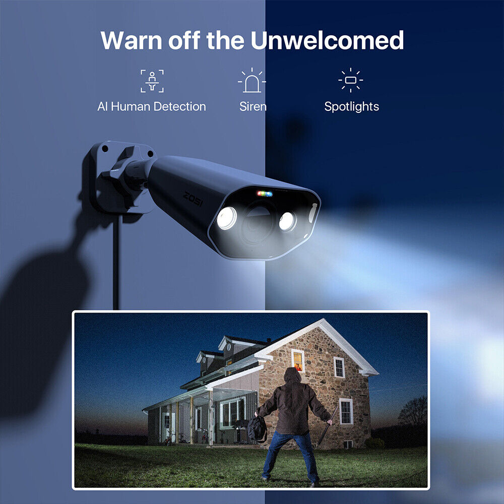 ZOSI Caméra de sécurité CCTV, 8MP Ultra HD, IA détection humaine, 8MP PAS de carte TF x 2