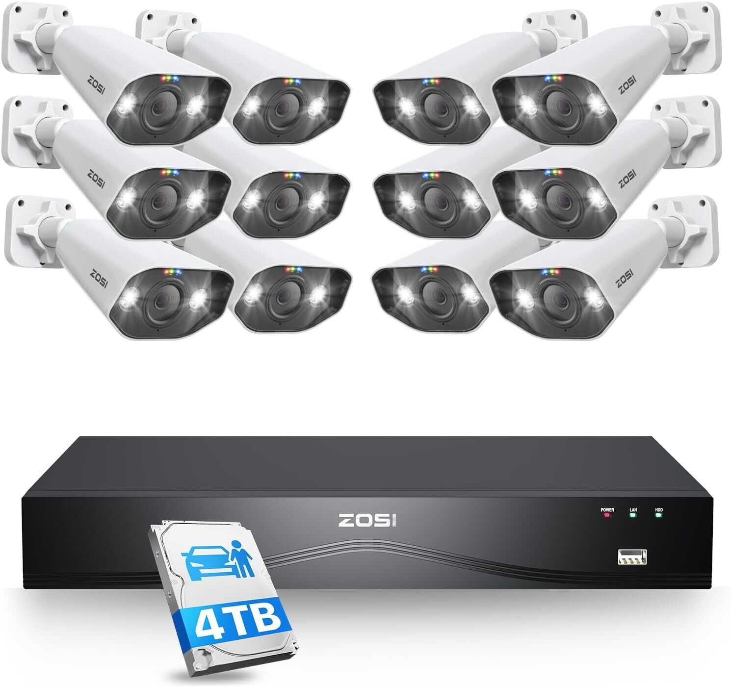 ZOSI 4K PoE Kit Caméra de Surveillance 12pcs 8MP Caméra 16CH 4K NVR avec 4To