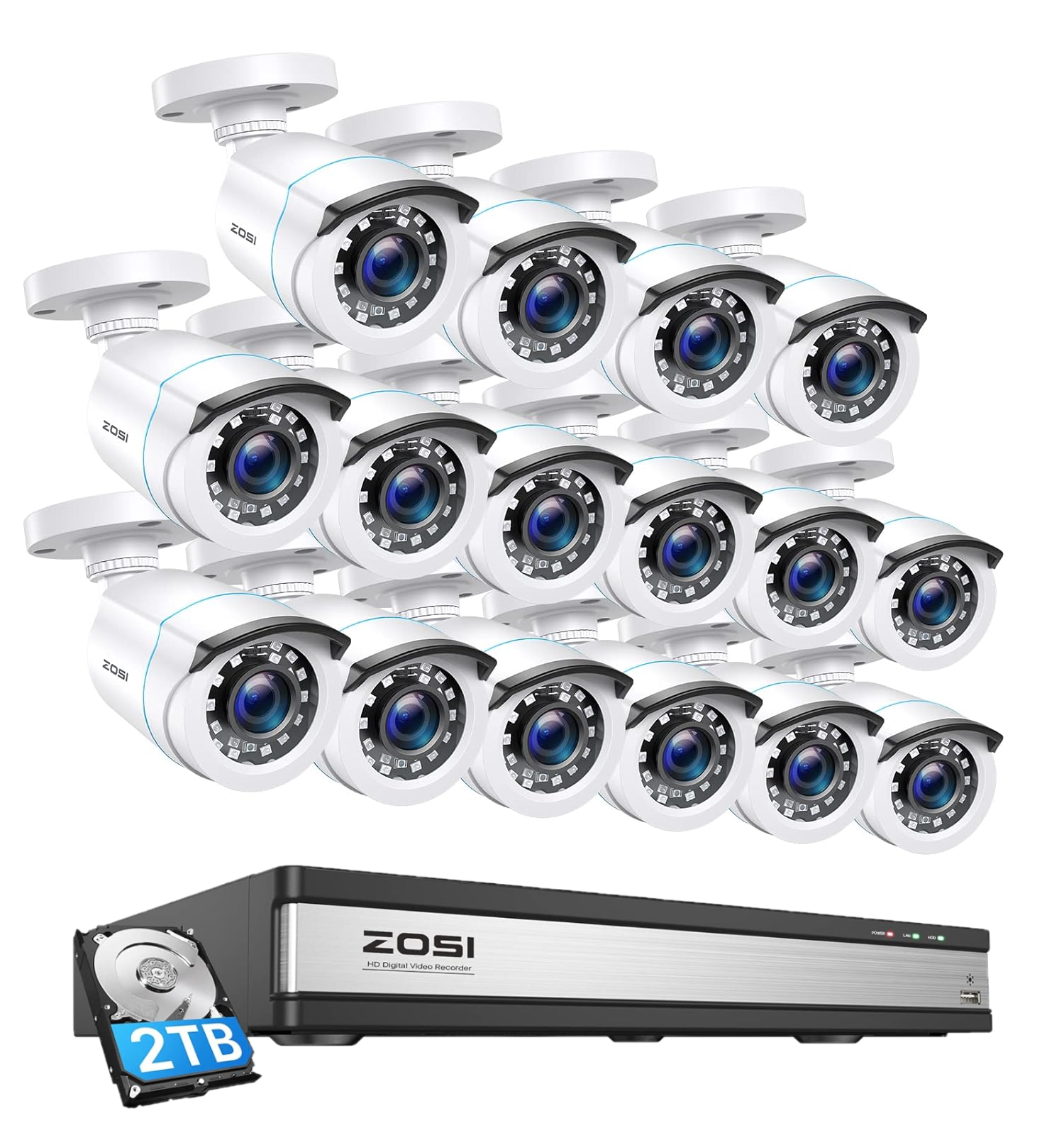 ZOSI H.265+ Kit Vidéo Surveillance 16CH DVR 2To 16pcs Caméra de Sécurité CCTV