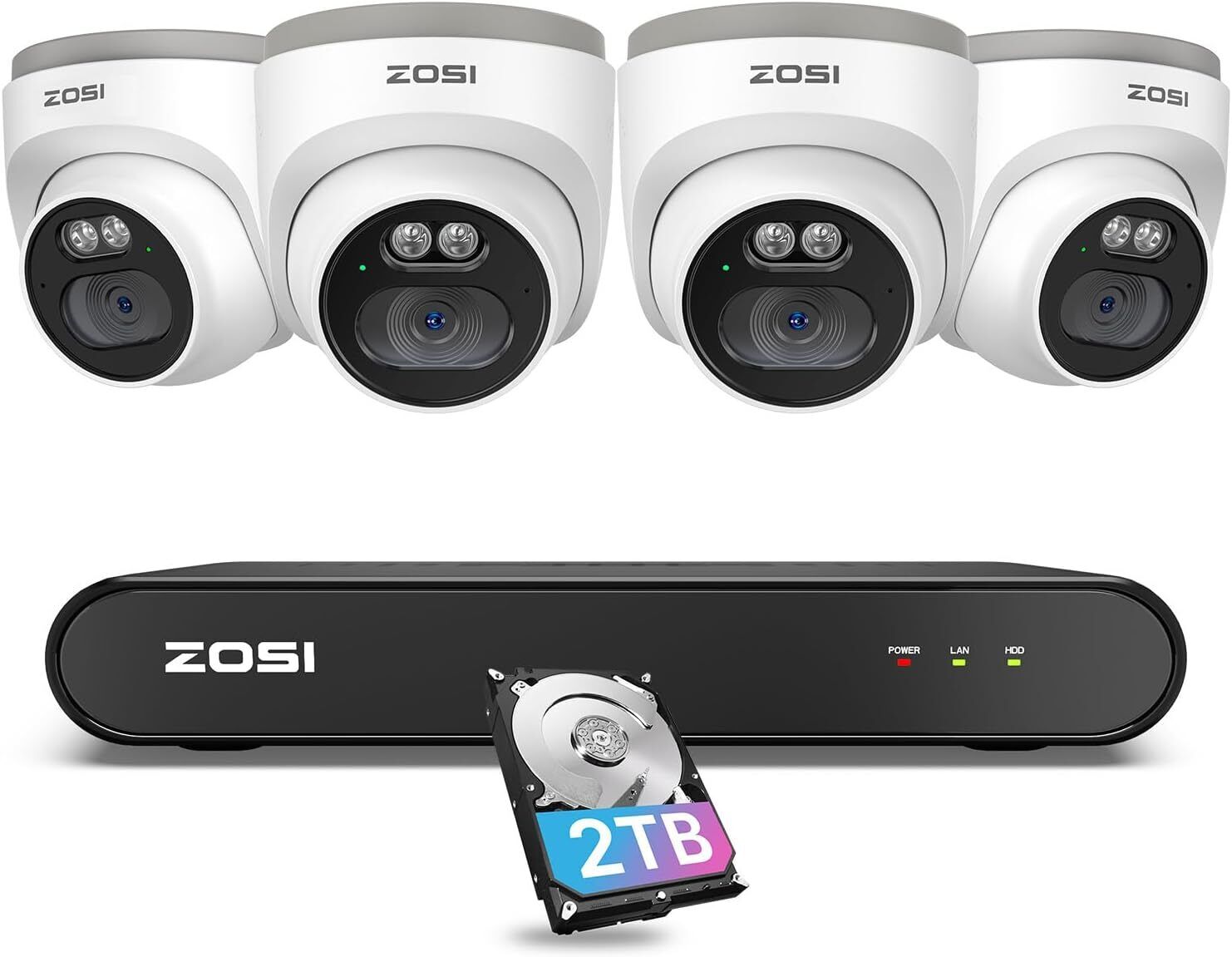 ZOSI Kit Caméra de Surveillance 1080p 8CH 5MP Lite DVR avec 2TB HDD 8X Caméra