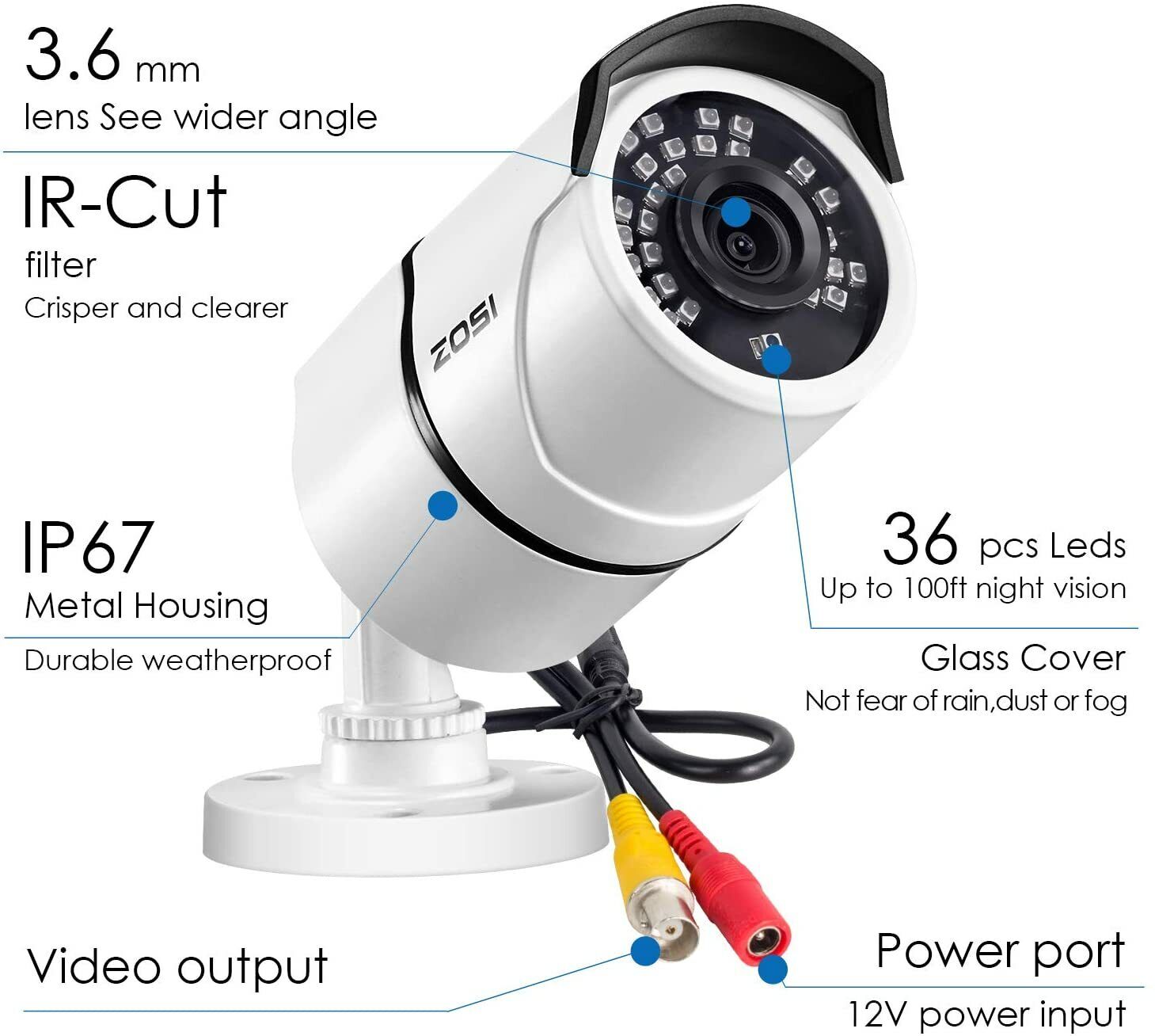 ZOSI 2MP 1080p 4in1 Caméra de Surveillance Extérieur 3.6mm Lens 30M IR 36pcs LED