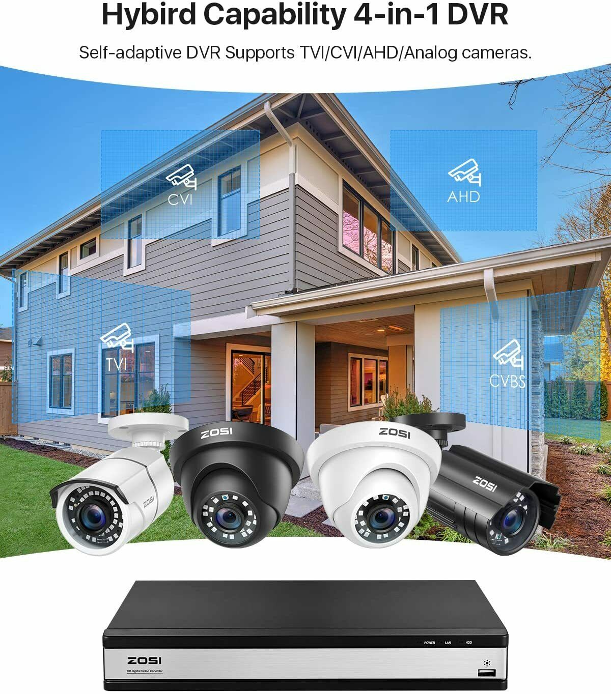 ZOSI 8CH 1080P H.265+ TVI DVR Caméra de Surveillance Extérieur/Intérieur CCTV