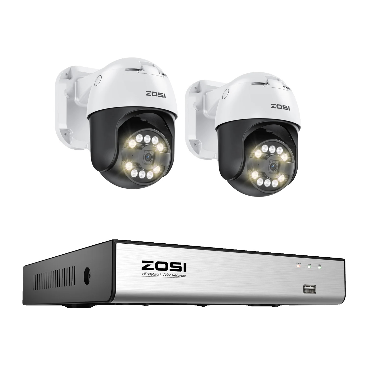 ZOSI 4K Caméra de Surveillance Extérieure, Détection de Personne Véhicule Animaux et Flamme, 8MP Camera IP PoE avec Pan Tilt pour Vue à 360° avec 8CH 8MP NVR Extensible à 16CH Enregistrement 24/7