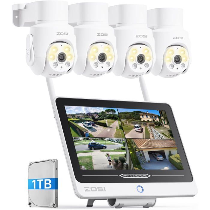 ZOSI 5MP Kit Caméra de Surveillance WiFi6 avec 12” Moniteur NVR 8CH en 8MP avec 1TB HDD Intégré Caméra IP Pan et Tilt Vue à 360°