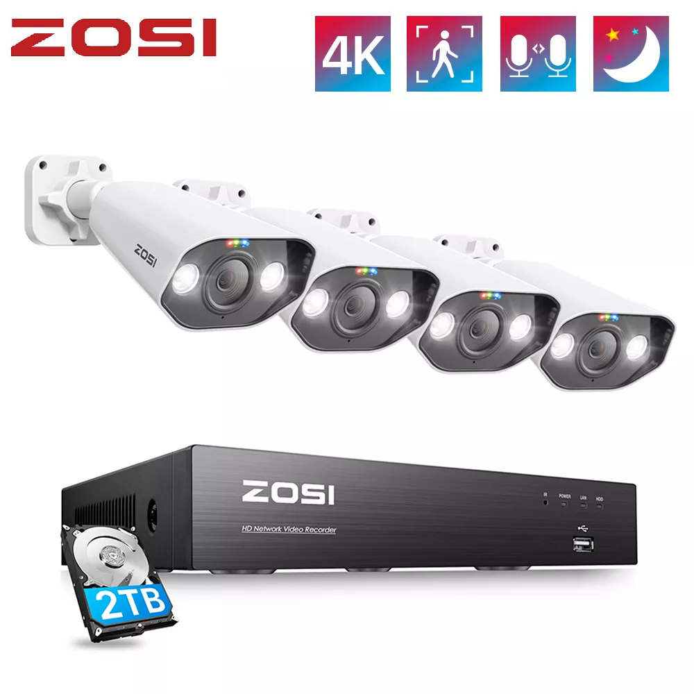 ZOSI 4K 2To PoE Caméra de Sécurité Kit Vidéo Surveillance Audio Bidirectionnel
