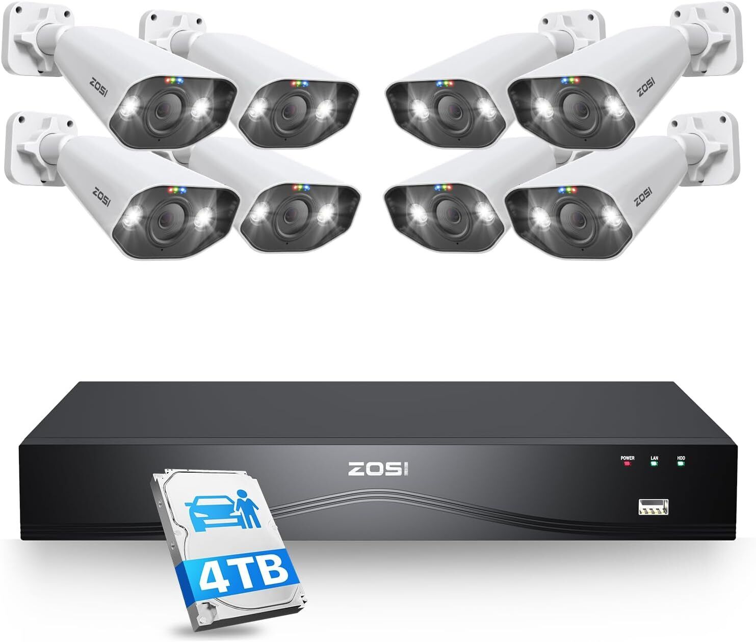 ZOSI 4K PoE Kit Caméra de Surveillance 16CH 8MP NVR et Disque Dur Intégré de 4T