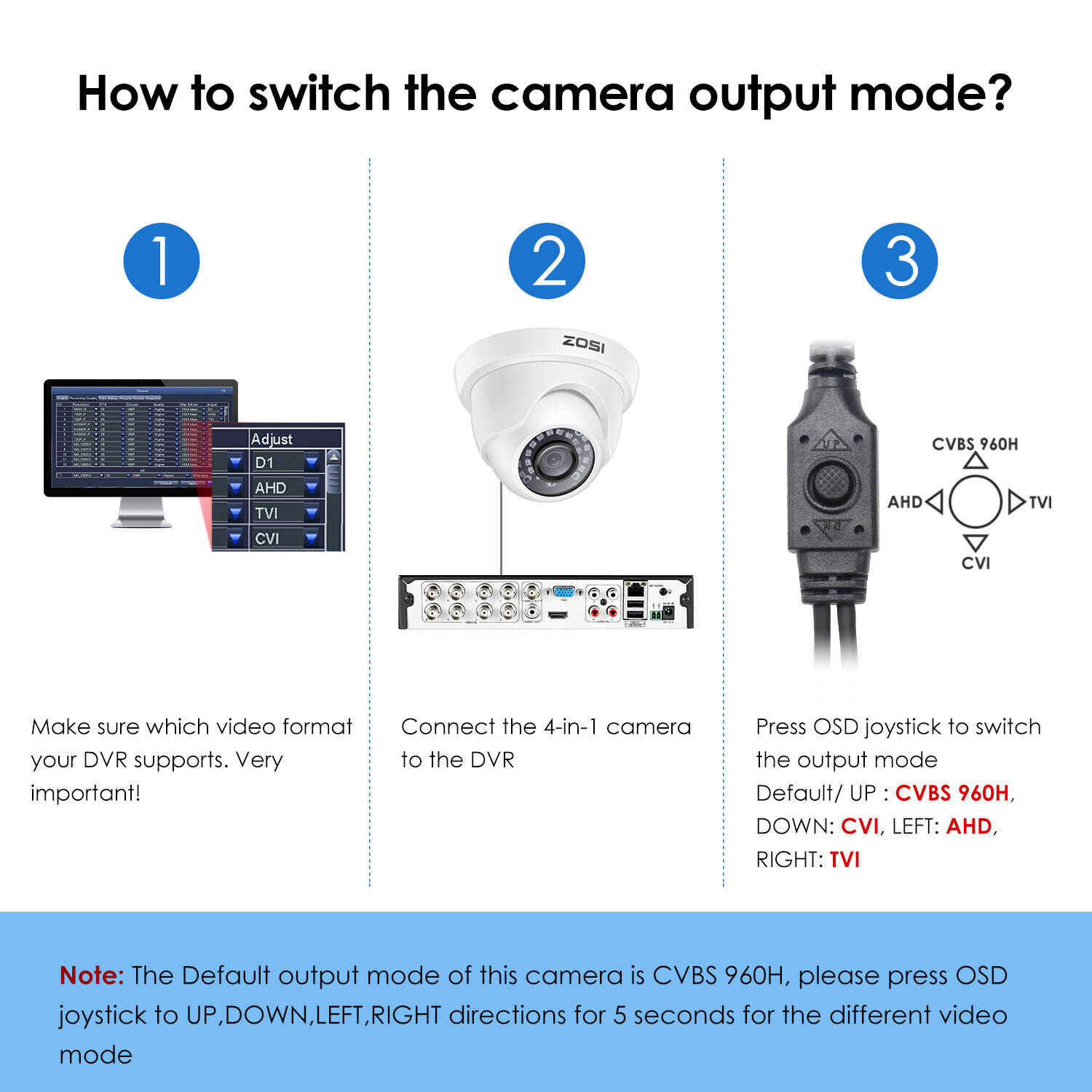ZOSI 4IN1 1080p Caméra de Surveillance Extérieure 20M IR Objectif 3.6mm