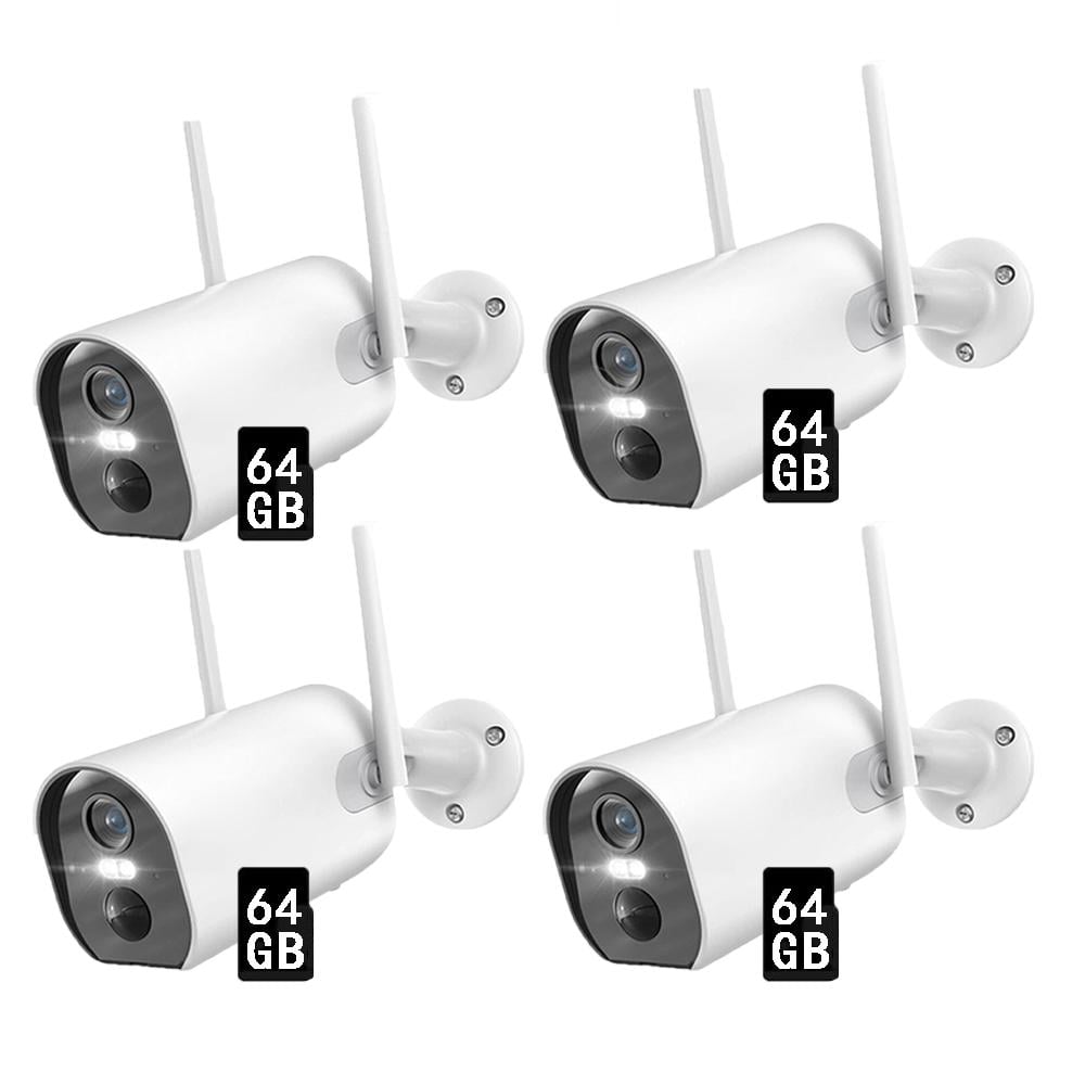 set de 4 caméras de surveillance extérieur/intérieur WLAN vision nocturne avec détecteur de mouvement PIR avec carte TF 64GB