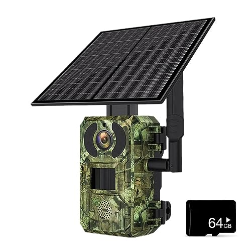 QAXRZCUCD Caméra De Piste Chasse Solaire Surveillance La Faune Vision Nocturne Infrarouge Caméras Sauvages Pièges Photo Images Et VidéOs Nettes(Camera Add 64GB Card)