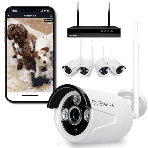Overmax Camspot NVR 4.0 Enregistreur et 4 Caméras de Surveillance IP Extérieures pour Monitoring, Wi-Fi, Résolution Full HD 1080p, Détection de Mouvement Notifications d'Alarme dans l'App, Portée Noct