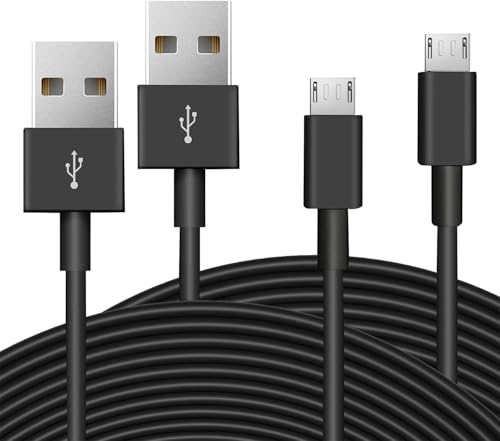 Lot de 2 câbles d'extension d'alimentation de 5 m pour caméras IP sans Fil, câble de Chargement et de synchronisation de données USB A vers Micro USB pour caméras sans Fil et Plus (Noir)