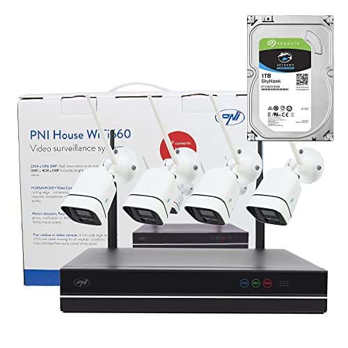 PNI House WiFi660 NVR Kit de vidéosurveillance avec 4 caméras sans Fil, 3 MP et Disque Dur PNI SafeHouse 1 to, 3,5" Inclus