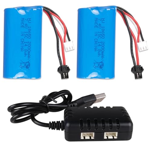 AMZZN 2x7,4 V 2000mAh 15C 2S SM-3P fiche Lipo Batterie avec Chargeur USB pour DE43 DE60 9500E RC Voiture, modèles Voitures, camions, Huina 1575 RC Auto ingénierie, RC Batteries pour Voiture Jouet