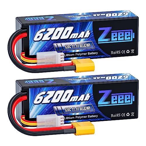 Zeee 3S Lipo 11,1V 120C 6200mAh avec Prise XT90 Hardcase RC Batterie pour véhicules à échelle 1/8 1/10, Voitures RC, camions-citernes, modèles de Course (2pcs)