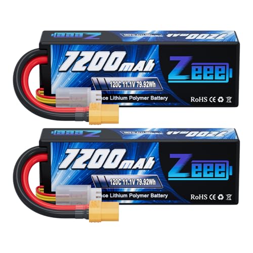 Zeee 3S Lipo 7200mAh 11,1V 120C avec Prise XT90 Hardcase RC Batterie pour véhicules à échelle 1/8 1/10, Voiture RC, Tank, Truggy, Buggy, camions RC, Bateaux (2pcs)