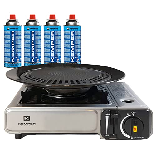 KEMPER - Barbecue Grill 2 en 1 Réchaud gaz piézo 2200 W + Plaque Grill + 4 Cartouches gaz Butane Camping
