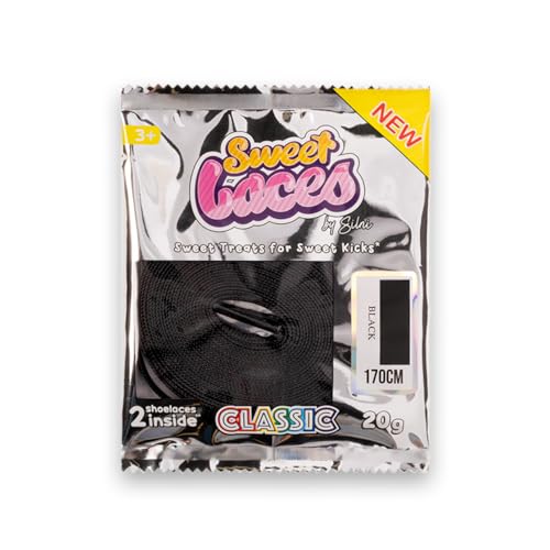 SweetLaces Classic - 2 Lacets Plats 130 cm Black - Couleur Unie - Lacets Sneakers & Basket, Air Jordan, Campus 00s, Cortez, 550 - Lavables en machine - Designés en France - Noir