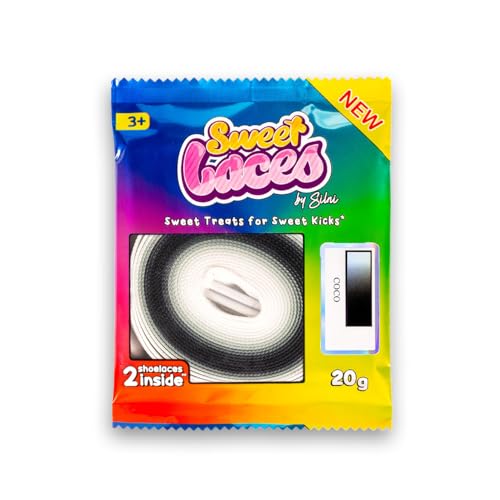SweetLaces Originals - 2 Lacets Plats 120 cm Coco - Lacets Couleur en Dégradé - Sneakers & Basket, Air Jordan, Campus 00s - Lavables en machine - Designés en France - Noir/Blanc