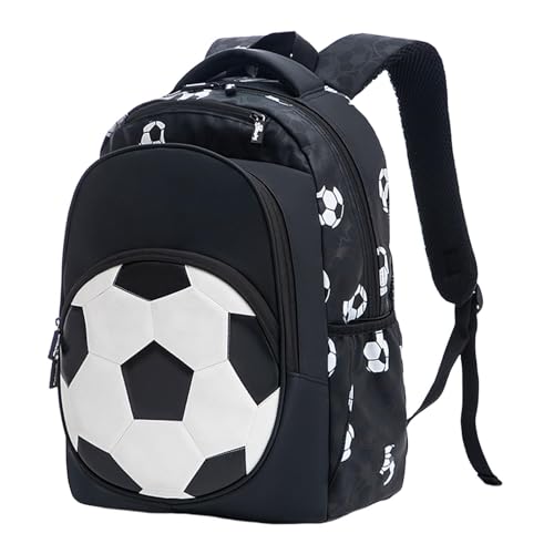 Teen Boy Backpack - Kids Boy Backpack Waterproof Sports | Sac à Dos de Football, Cartable avec Capacité pour Collège, Camping, Campus, Voyage, Trajet Garçon Cartable, Football Enfant, Noir, verwijzen