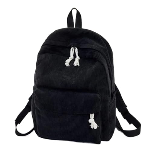 Women'S Backpack Sac d'école en velours côtelé, sac à dos d'entraînement antivol, bandoulière for adolescent, unisexe, classique, Port Campus pour Femme(Black)