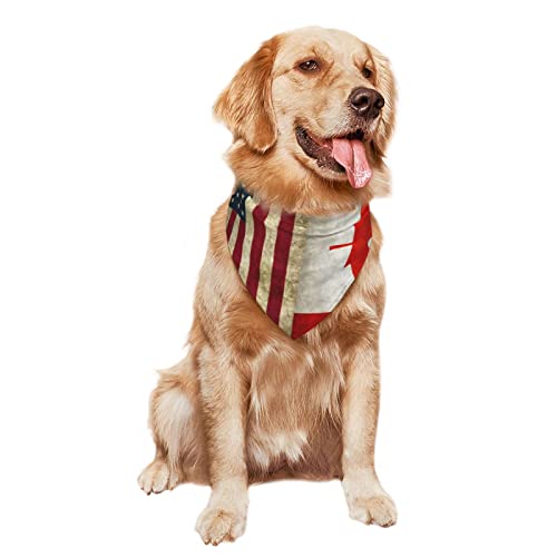 Bandana pour Chien Drapeau des États-Unis Et du Canada Triangulaire pour Animaux Unique Vêtements, pour Petite, Moyenne Et Grande Taille, Fêtes, Photo Prises, 70x30cm