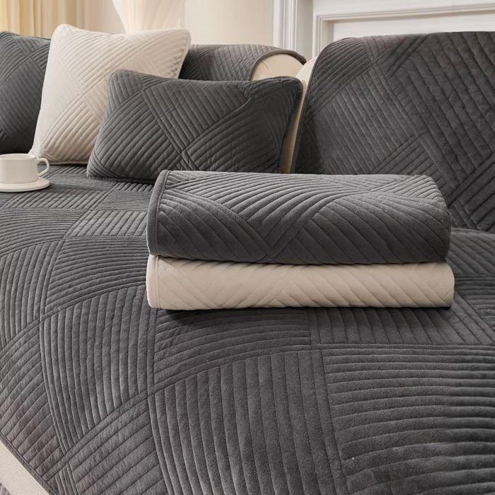 Coque pour Canape 1 2 3 Places Antiderapant Microfibre Velours Lavable - Gris