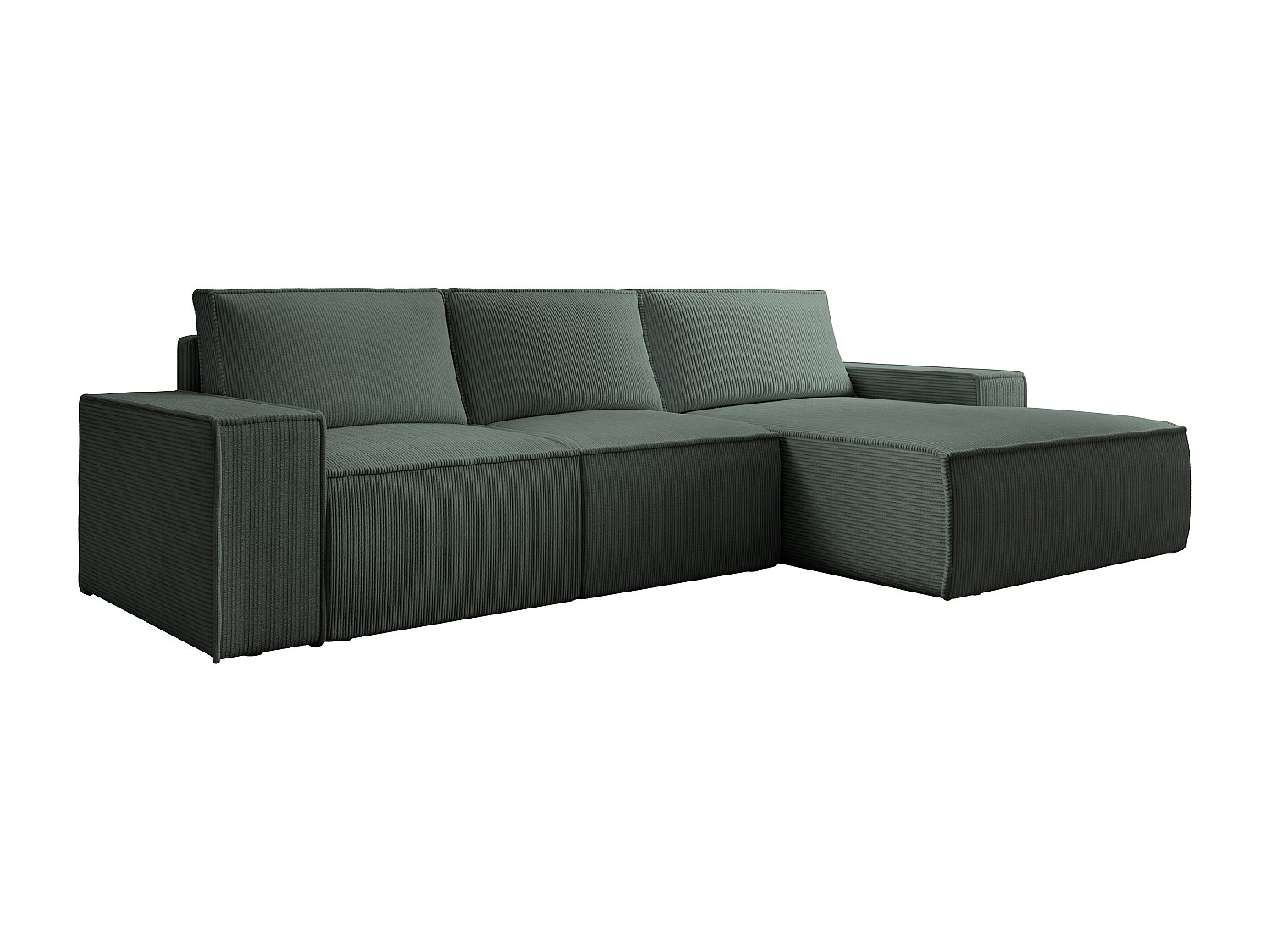 Grand canapé d'angle droit convertible en velours côtelé vert sapin AMELIA