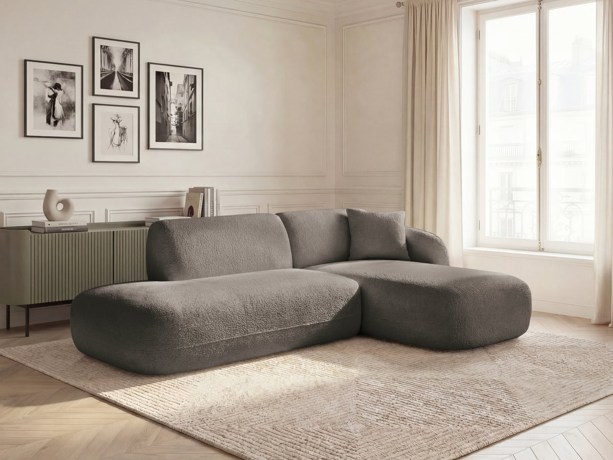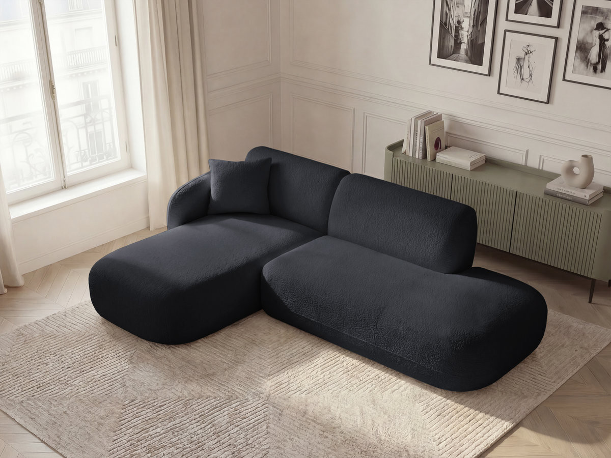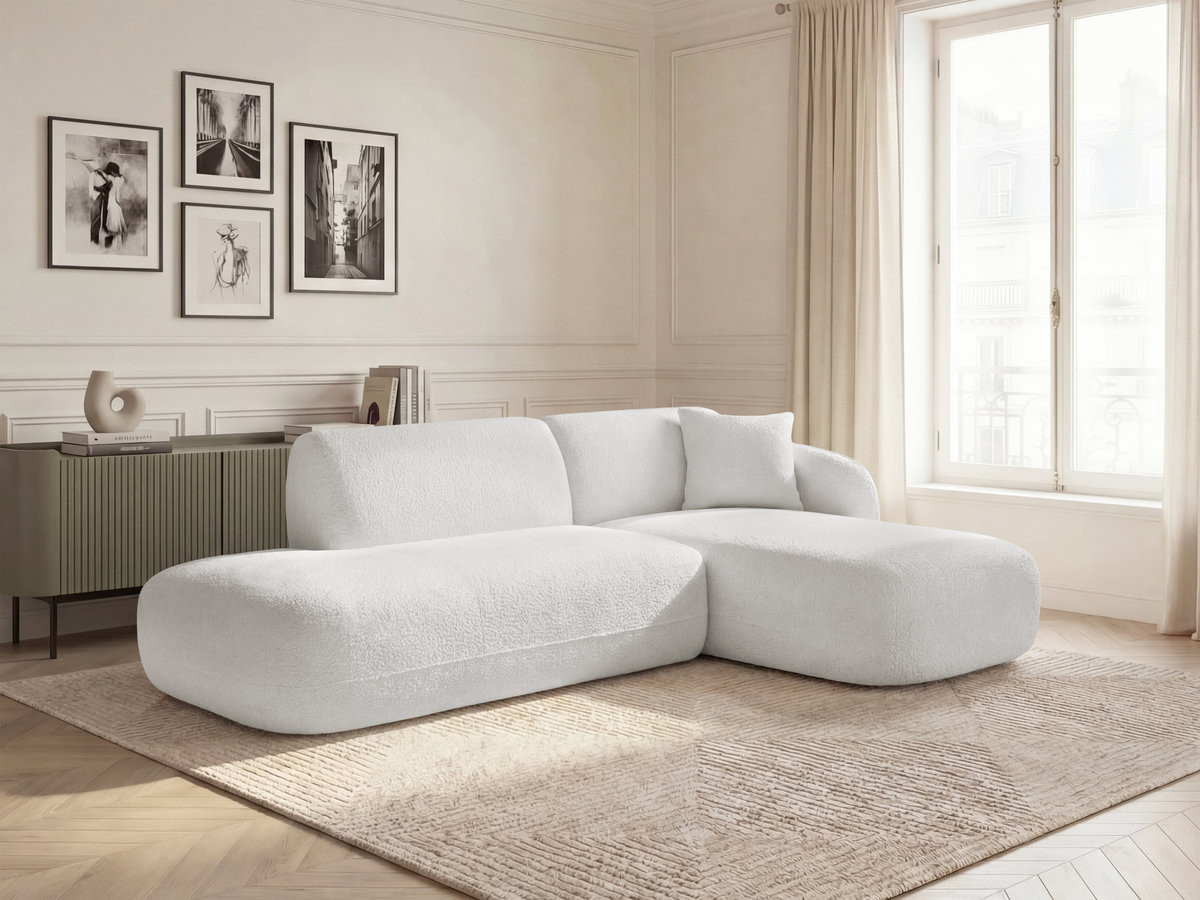 Bobochic Canapé d'angle fixe ALESIA tissu bouclette angle gauche