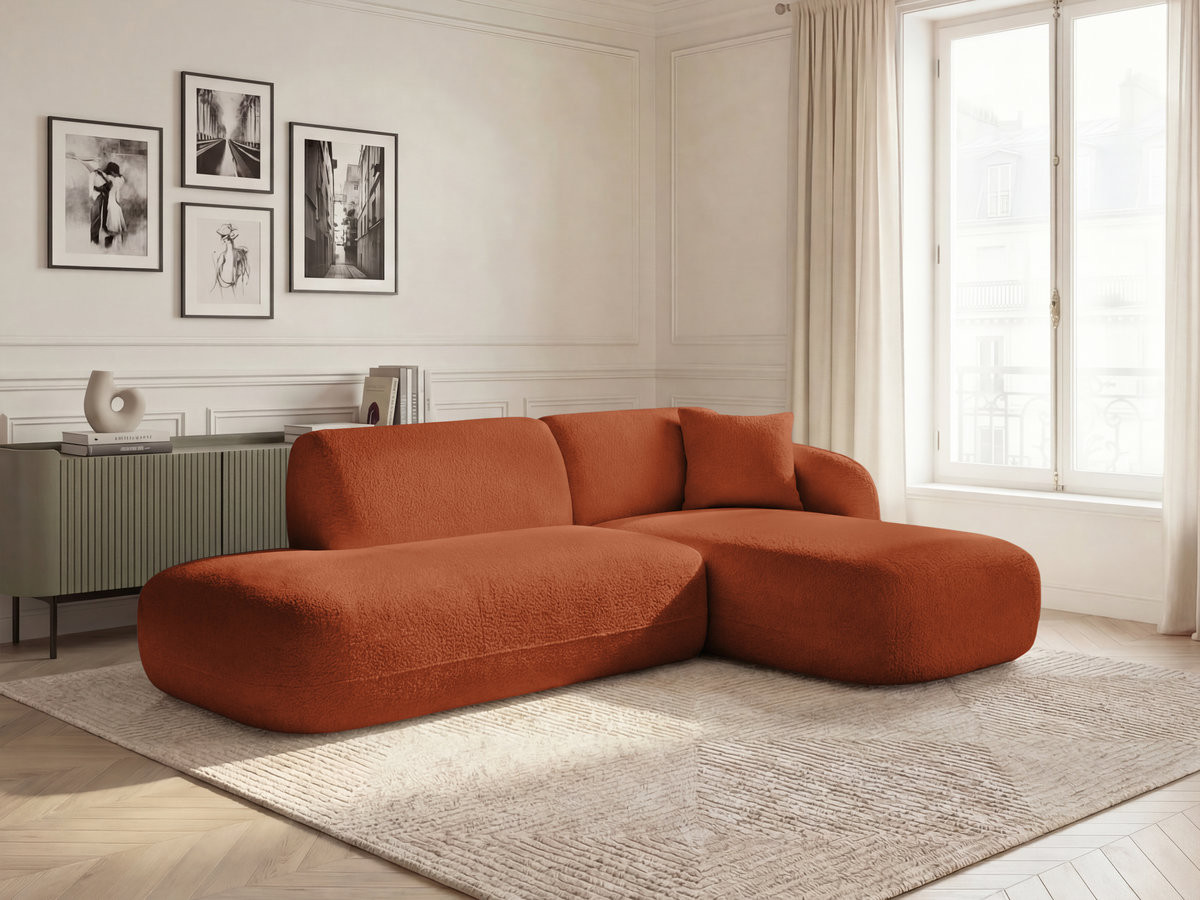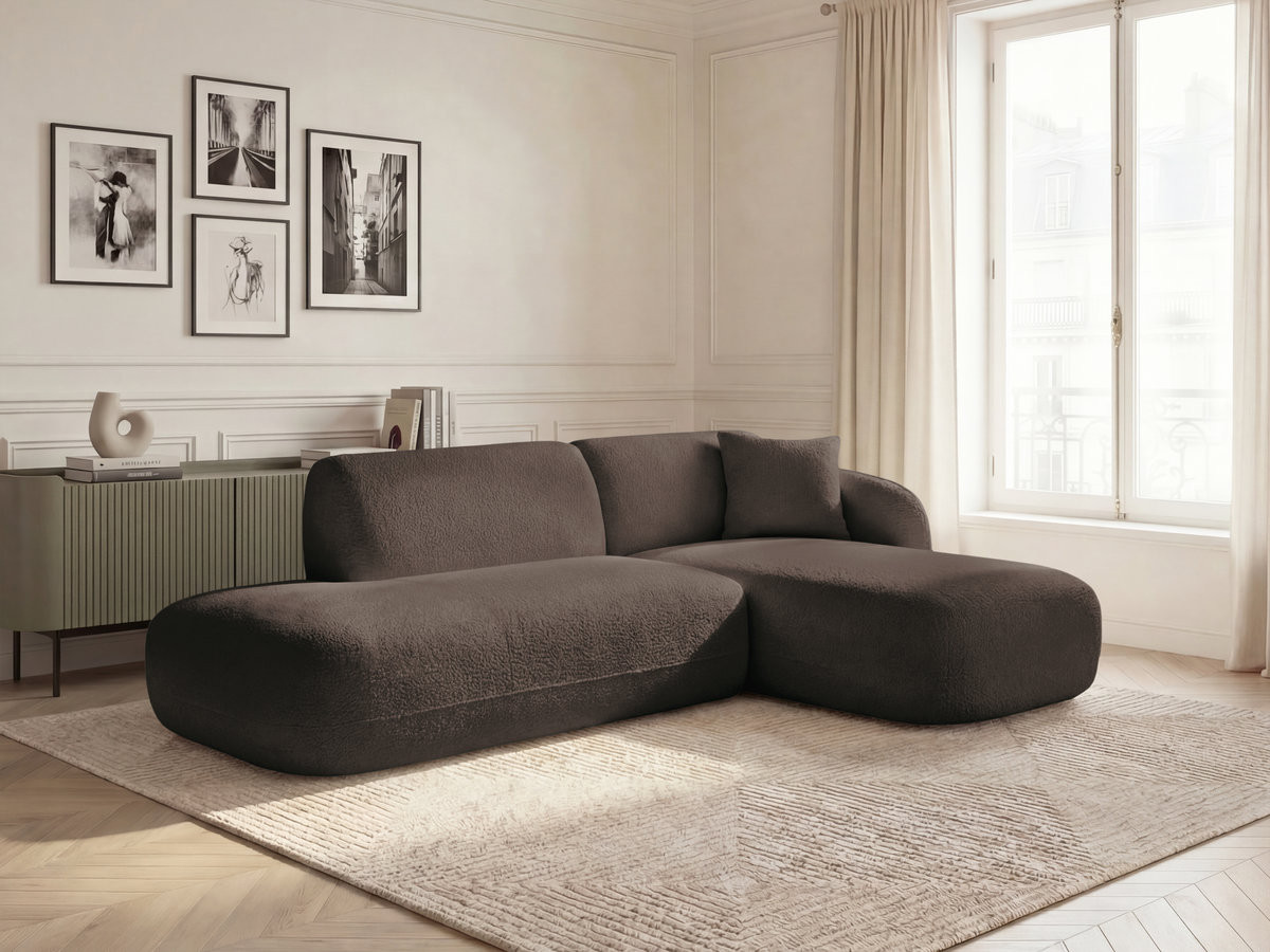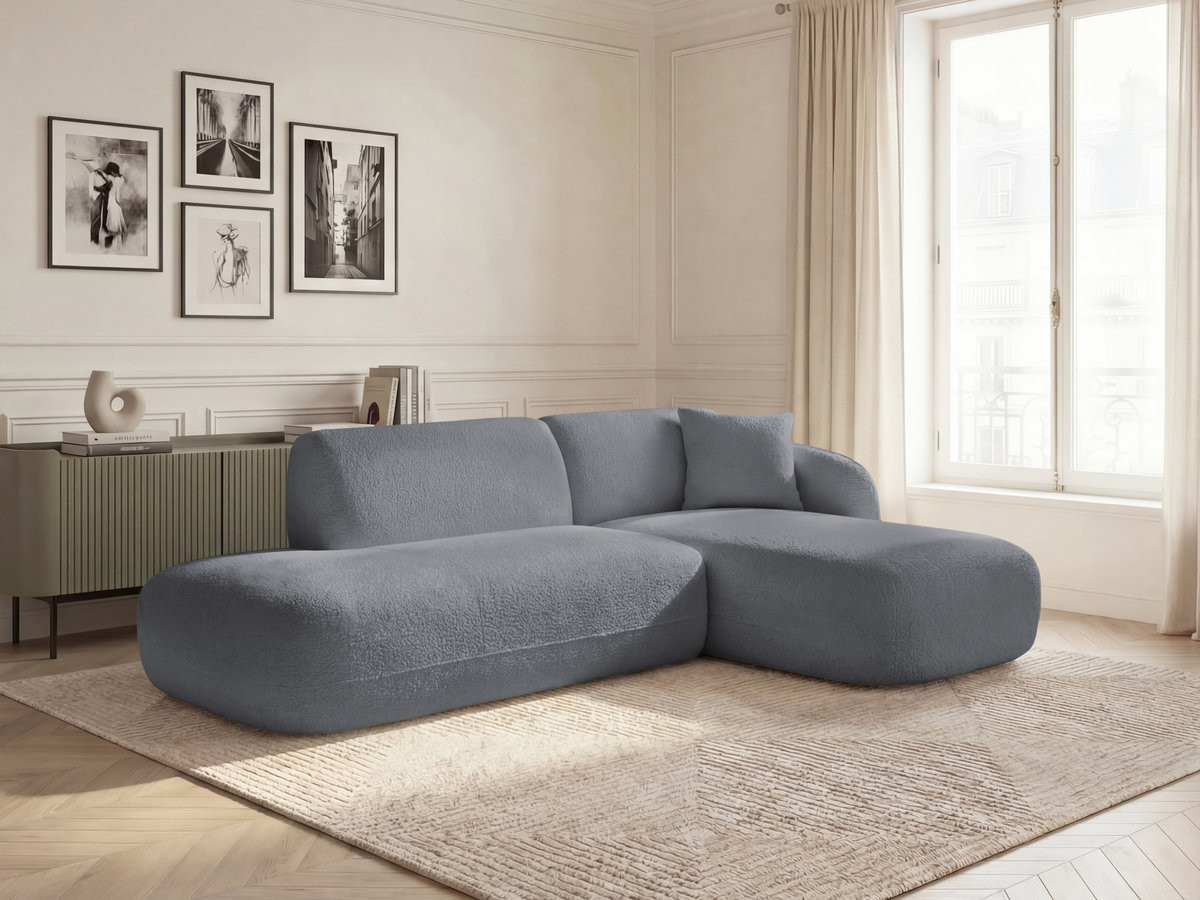 Bobochic Canapé d'angle fixe ALESIA tissu bouclette angle gauche