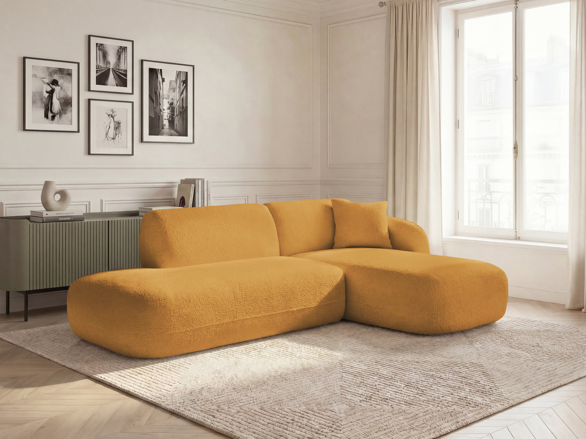 Canapé d'angle fixe modulable ANDA avec 1 méridienne et 1 chauffeuse bout de canapé jaune angle droit BOBOCHIC 3 places
