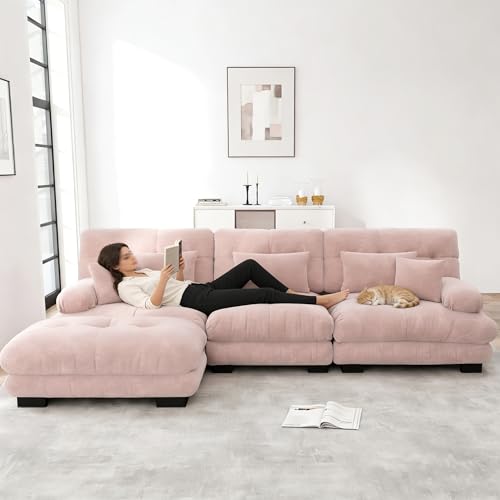 AX LIVING Canapé d'angle petit modèle avec fonction sommeil Ribella - 265 cm de large, Marron Gauche