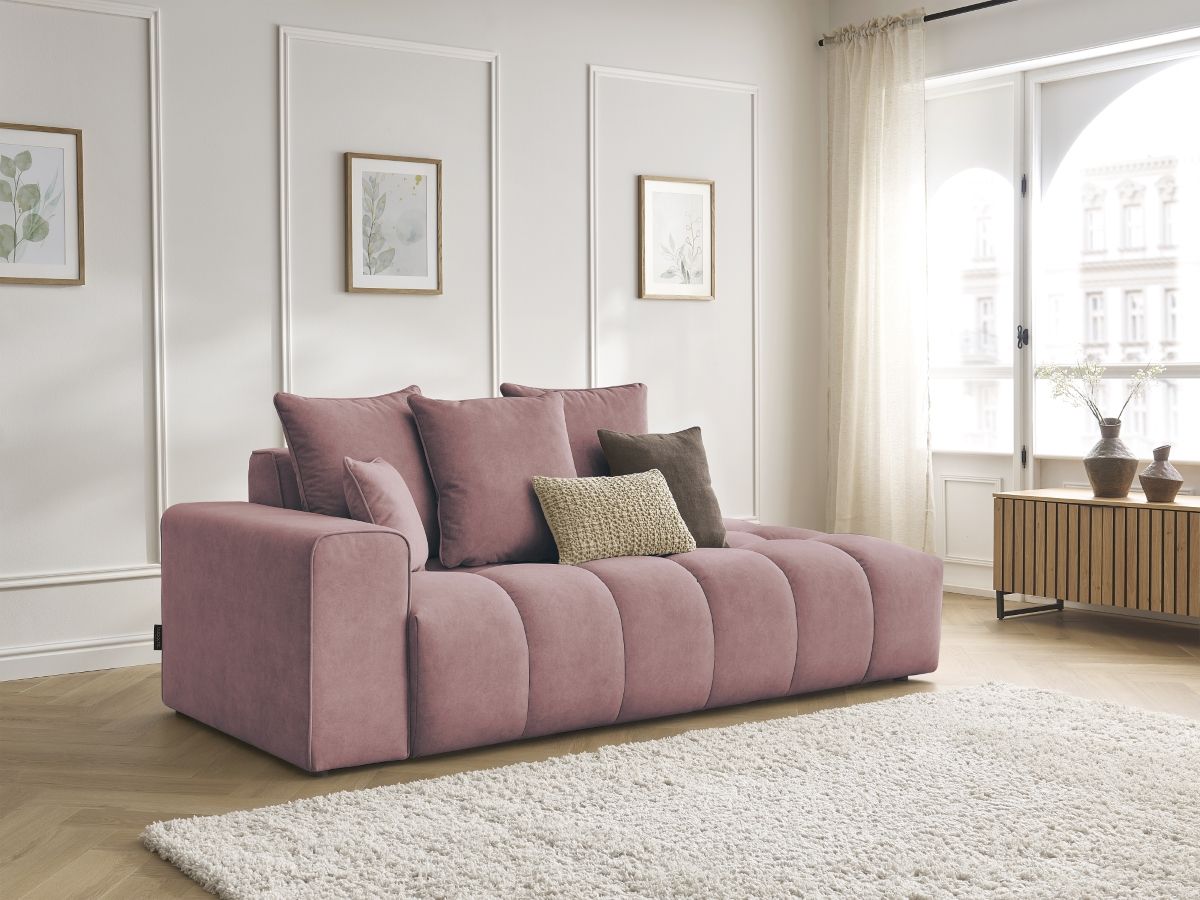 Canapé droit fixe MONT-BLANC velours rose accoudoir gauche BOBOCHIC 4 places