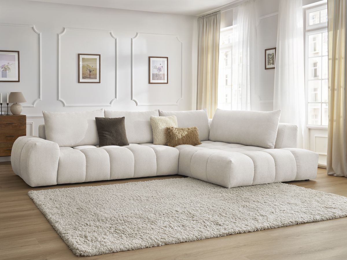 Canapé d'angle fixe EVEREST tissu texturé blanc angle gauche BOBOCHIC 4 places
