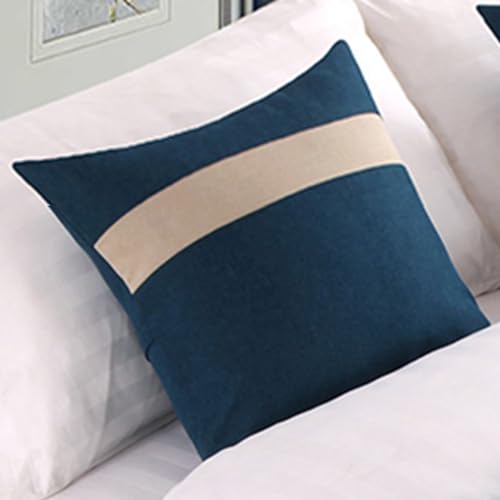 HLASMSPE Housse de coussin assortie en lin pour lit, taie d'oreiller avec fermeture éclair, housse de coussin de siège de voiture en polyester pour canapé, chaise, bleu nuit, 45 x 45 cm
