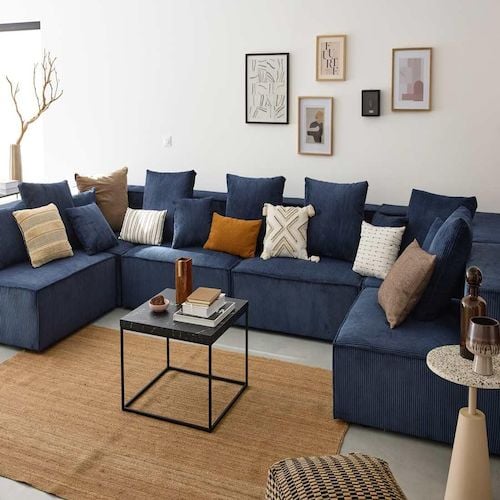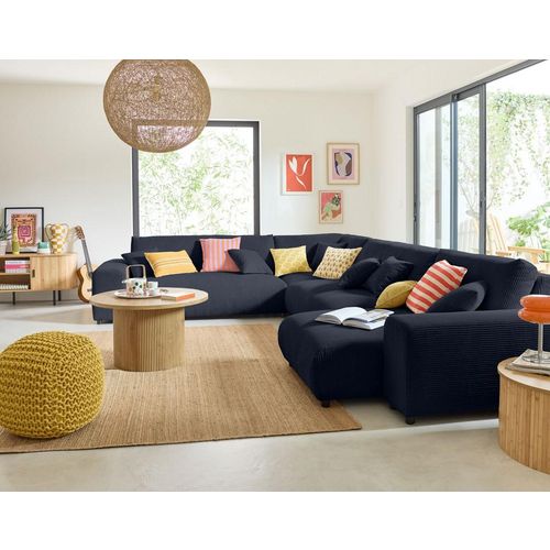 Colombine - canapé modulable panoramique - 7 places - en velours côtelé - bleu nuit bleu nuit Taille unique