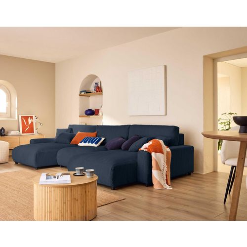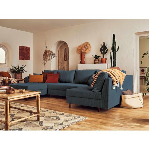 Pivoine - canapé panoramique en u - 7 places - convertible avec coffre - en velours côtelé - bleu nuit bleu nuit Taille unique