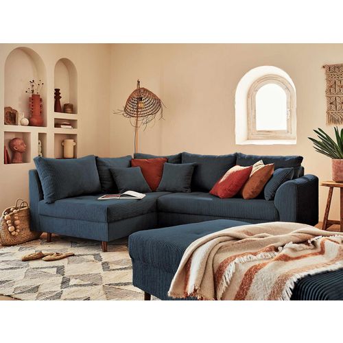 Rune - canapé d'angle gauche - 4 places - avec pouf d'appoint - en velours côtelé - bleu nuit bleu nuit Taille unique