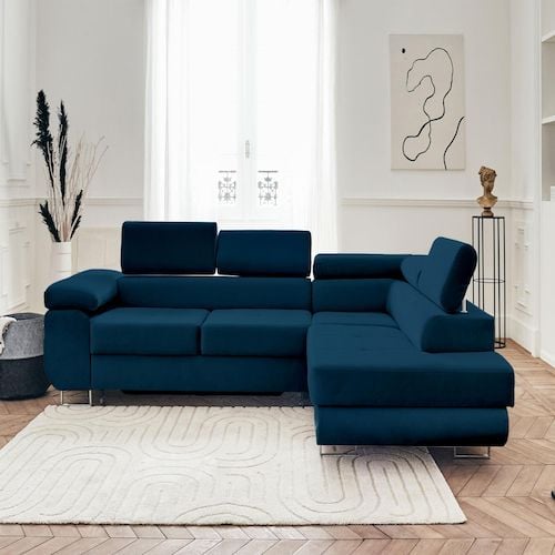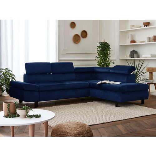 Pablo - canapé d'angle droit - 5 places - convertible avec coffre et têtières réglables - en velours - bleu nuit bleu nuit Taille unique