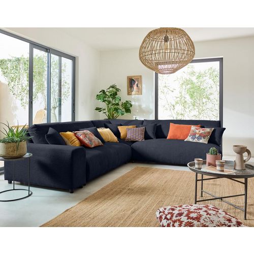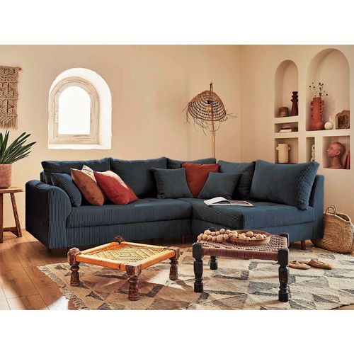 Rune - canapé d'angle droit - 4 places - en velours côtelé - bleu nuit bleu nuit Taille unique