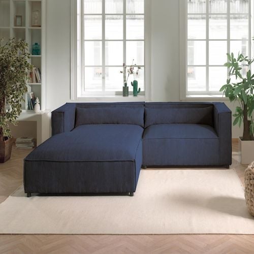 Colombine - canapé modulable d'angle gauche - 6 places - en velours côtelé - bleu nuit bleu nuit Taille unique
