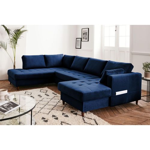 Anna - canapé panoramique en u - 7 places - convertible avec coffre - en velours - bleu nuit bleu nuit Taille unique