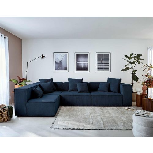 Garance - canapé modulable d'angle gauche - 8 places - en velours côtelé - bleu nuit bleu nuit Taille unique