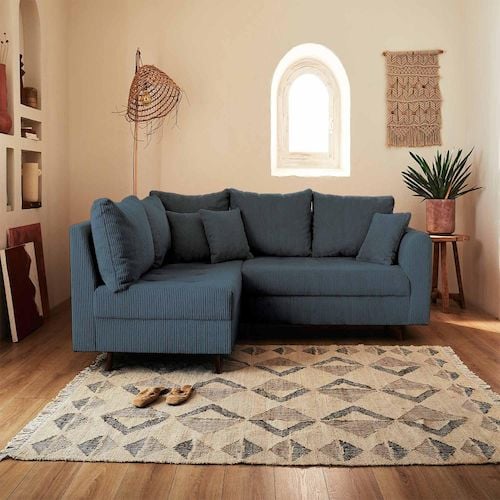 Rune - canapé d'angle gauche - 4 places - en velours côtelé - bleu nuit bleu nuit Taille unique