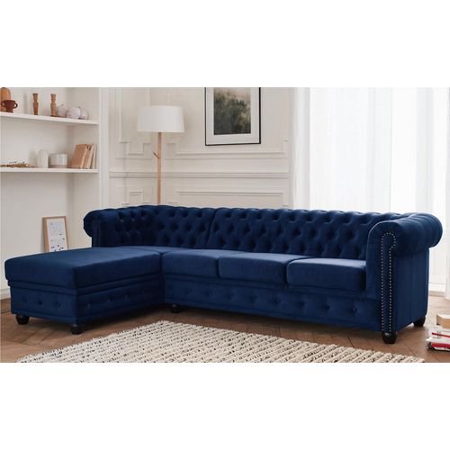 William - canapé chesterfield d'angle gauche - 4 places - en velours - bleu nuit bleu nuit Taille unique