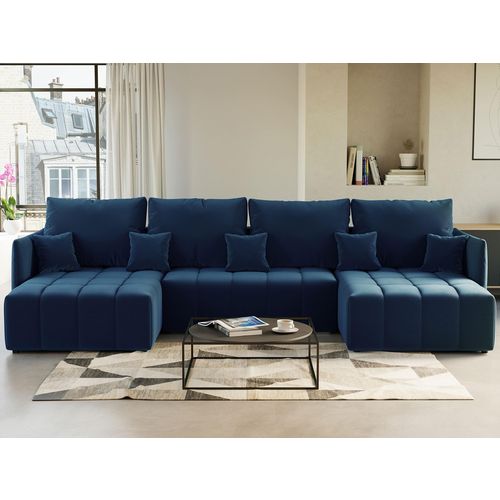 Petra - canapé panoramique en u - 7 places - convertible - avec coffre - en velours - bleu nuit bleu nuit Taille unique